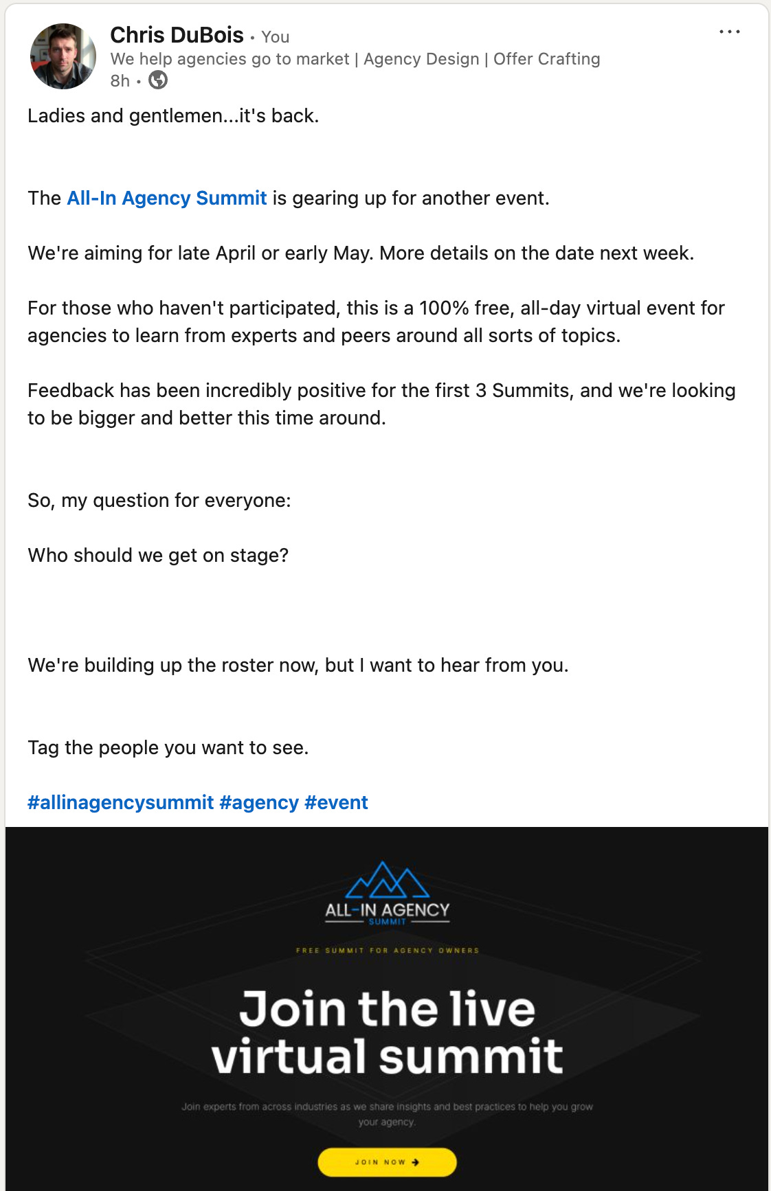Visit this post so you can tag someone you’d like to see on stage. Or tag yourself.