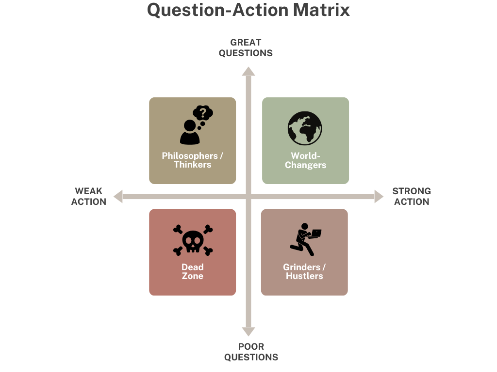 Questions, without action, are just philosophers. And action, without great questions, are those grinding themselves to death.