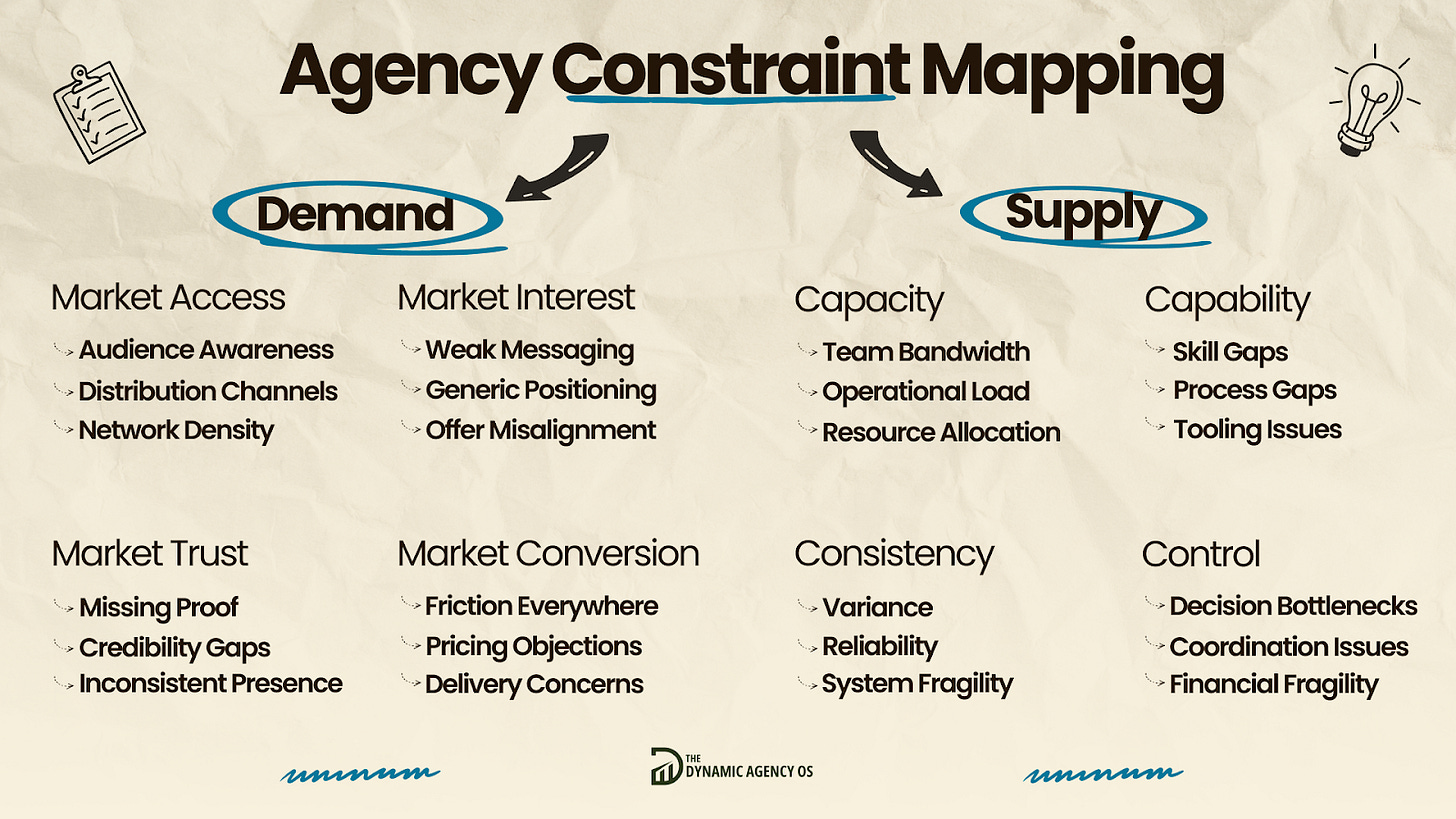 Demand constraints mean you don’t have enough opportunities flowing toward you. Supply constraints mean you can’t handle the opportunities you have. One of these is choking your growth right now. Maybe both, but one matters more than the other. One is the bottleneck that’s capping everything else.